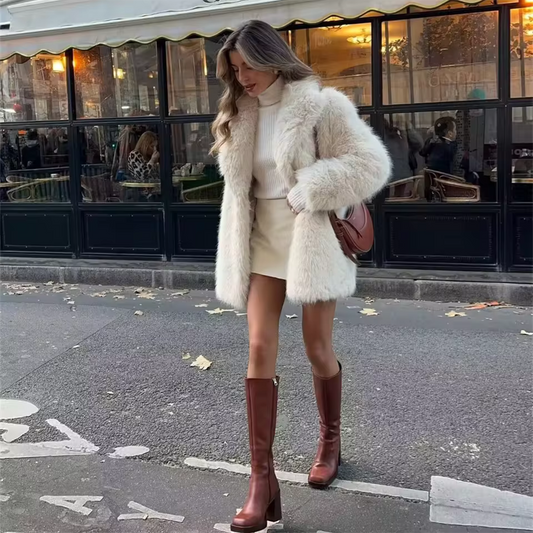 Manteau long effet fourrure